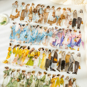 番茄酱少女PET贴纸 南法的松弛感系列 原创人物主题复古DIY素材