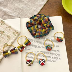 复古学院风格纹蝴蝶结发夹儿童彩色格子发绳马尾大肠发圈百搭头饰