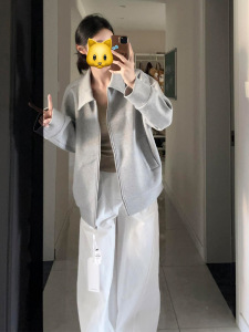 灰色翻领卫衣外套女款春秋季2025新款韩系宽松棒球服独特休闲上衣