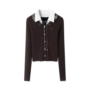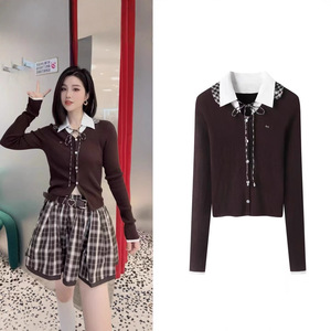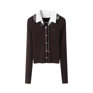 2025秋季新品少女感可卸格子领毛衣针织开衫RL72801113