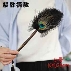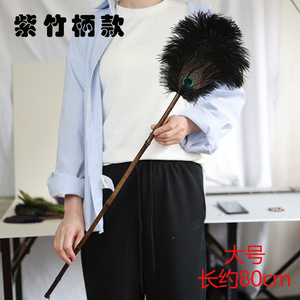 鸵鸟孔雀羽毛掸子-紫竹柄