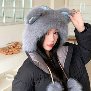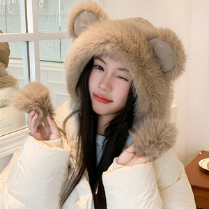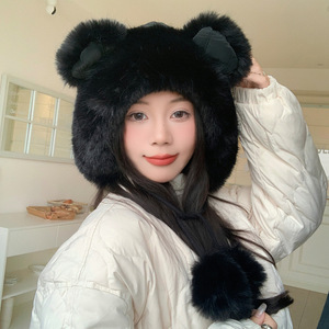 冬季帽子女毛绒护耳保暖帽东北加绒加厚防寒帽可爱小熊耳朵雷锋帽