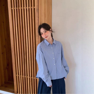 韩系条纹衬衫女2025秋季新款宽松显瘦休闲百搭长袖衬衣上衣潮