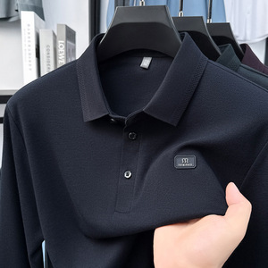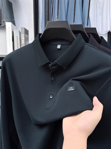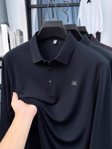 2025秋季抖音直播爆款男士POLO翻领长袖轻奢高级感休闲纯色男上衣