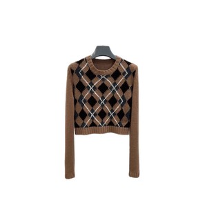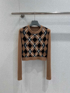 2025秋季新款南油pra减龄少女气质随性风拼色菱格挂毛logo针织衫