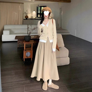松弛感穿搭一整套秋季新款法式温柔风假两件针织衫半身裙两件套女