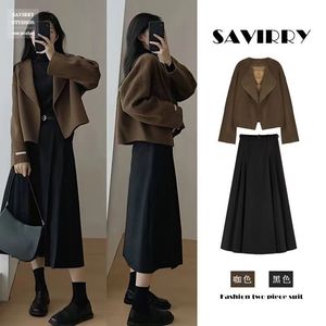 春秋女装奶系毛呢温柔高级秋冬外套2025高腰新款半身裙套装