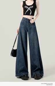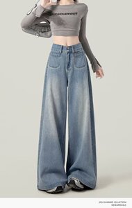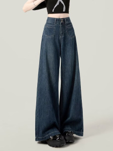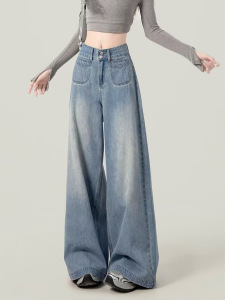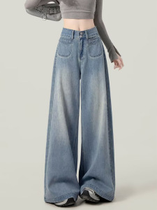 美式阔腿牛仔裤女潮春秋新款复古休闲宽松高腰显瘦垂感拖地长裤子