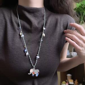 彩色小象气球狗编绳串珠吊坠项链女轻奢小众设计高级感毛衣链潮