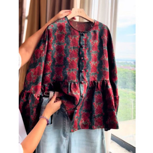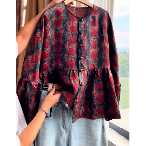 2025秋季新款韩系大码设计感圆领长袖独特别致显瘦别致复古上衣