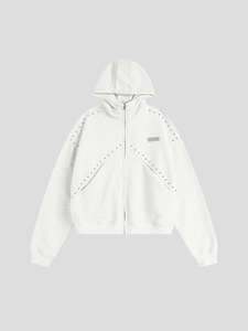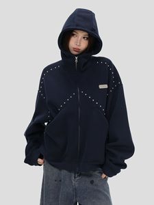 秋冬新款国潮情侣美式「拼接铆钉拉链卫衣」男女宽松连帽开衫外套