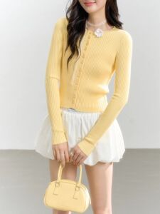 早秋短款针织开衫外套女2025新款修身韩系纽扣显瘦长袖
