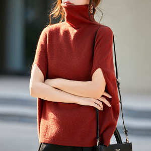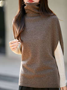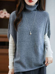 100%纯羊毛高领针织打底衫女短袖叠穿马夹背心堆堆领洋气毛衣坎肩