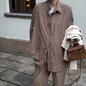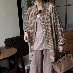 Owis 坠入咖格织就的秋日漫游|色织复古宽松软糯慵懒风衬衫百搭