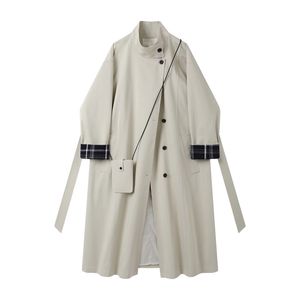 韩版复古英伦风超好看风衣外套女秋冬季慵懒休闲立领大衣格纹撞色