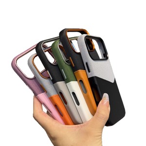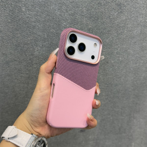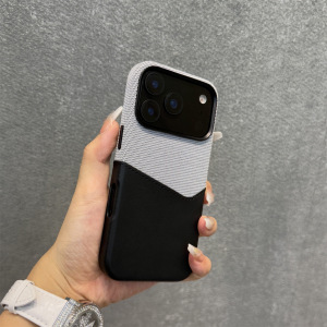 适用iPhone17ProMax手机壳布纹拼接色皮革苹果17 Air磁吸保护套17