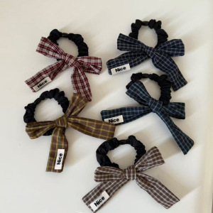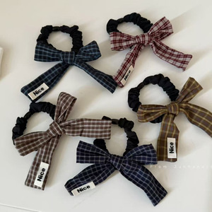 韩国格纹蝴蝶结发圈基础个性百搭复古耐用头绳发饰新款