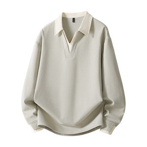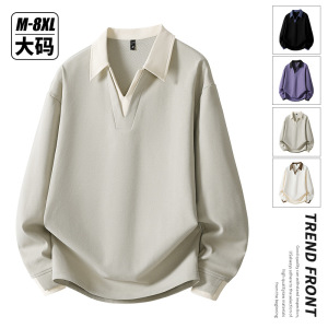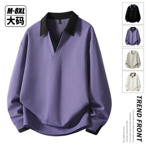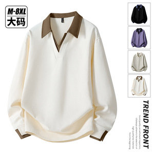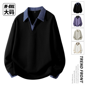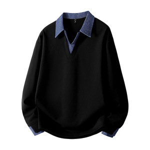 潮流大码迪桑罗纹拼色POLO衫V领卫衣男春秋新款假两件宽松打底衫