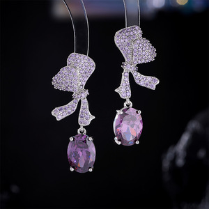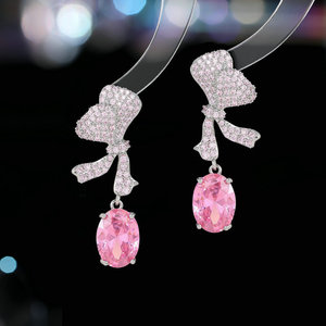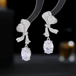 轻奢高级感蝴蝶结铜镶锆石耳环s925银针优雅气质超闪时尚精致耳饰