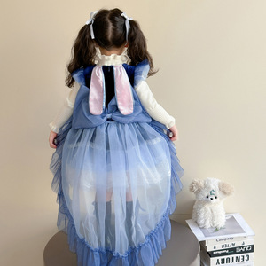 女童兔子警官公主裙秋季新款儿童卡通蓬蓬裙生日礼服洛丽塔连衣裙