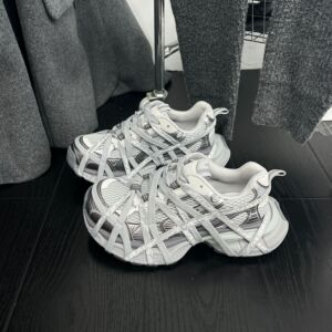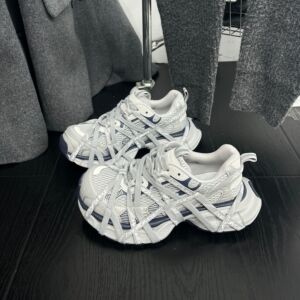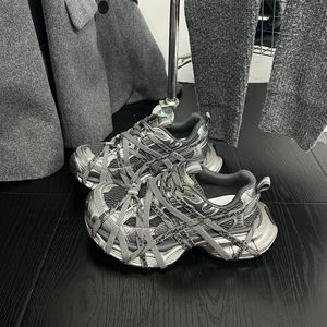 欧洲站网面透气厚底绑带老爹鞋女2025新款百搭复古轻便休闲运动鞋