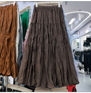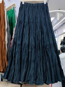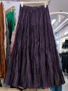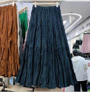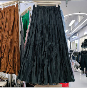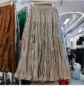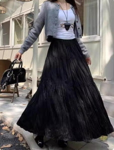 三折丝绒蛋糕裙女2025秋冬新款高腰显瘦半身裙复古褶皱A字百褶裙