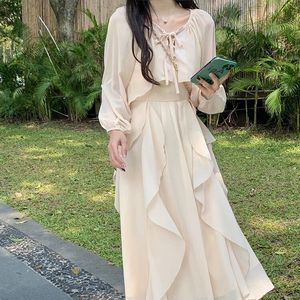 温柔风收腰显瘦气质吊带连衣裙套装女+森系高级感长袖防晒开衫女