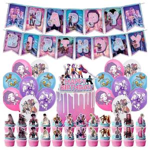 亚马逊跨境pop猎魔女团主题生日派对装饰品拉旗蛋糕插气球套装