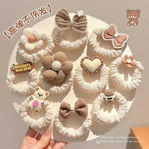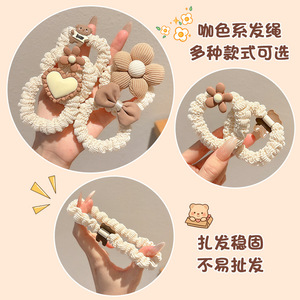 秋冬奶咖系花朵头绳发圈女孩可爱头饰儿童发绳高弹力扎头发橡皮筋