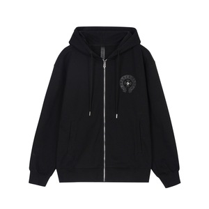 外贸秋冬新款CH克罗 洗水烧花贴皮绣拉链开衫卫衣男女款一件代发