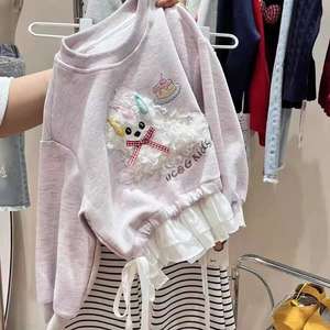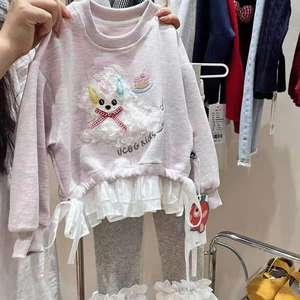 韩国童装2025秋季新款女童拼接立体卡通小狗卫衣儿童洋气花边上衣