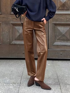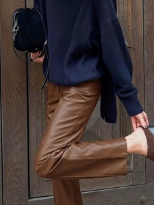 2025秋冬新款pu皮革棕色长款直筒裤皮裤女设计感气质时尚跨境长裤