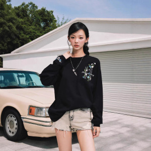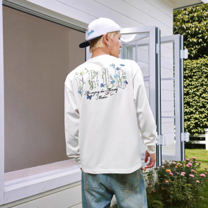 MEDM2025新品蝴蝶花藤圆领休闲长袖T恤通勤简约情侣打底衫上衣