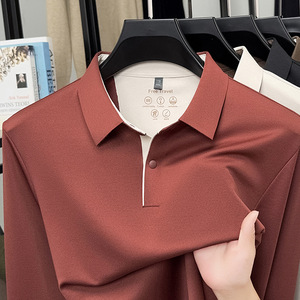 跨境高品质秋季新款男士长袖polo衫撞色全无痕含羊毛吸汗透气 t恤