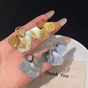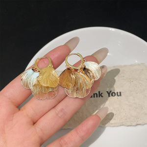 镂空蝶翼流苏银杏叶耳扣秋天轻奢百搭耳环独特设计感小众气质耳钉