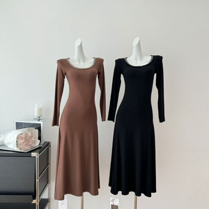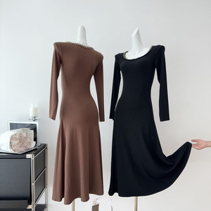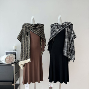 秋日纸片人/显瘦显高拼接织带鱼尾连衣裙+斗篷套装两件套