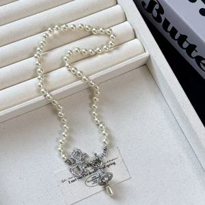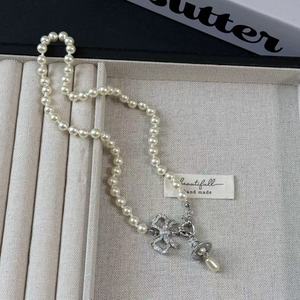 甜酷辣妹微镶锆石蝴蝶结水滴珍珠土星项链女满钻高级感轻奢锁骨链