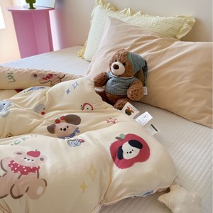 A类卡通少女心针织棉豆豆绒被芯春秋冬被单双人全棉保暖被子批发