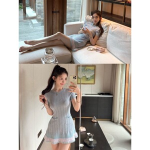 设计感毛边开衫连衣裙套装女2025秋新款多巴胺甜欲千金显白两件套