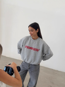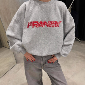 速卖通热销男友风字母刺绣上衣2025早秋新款宽松百搭圆领卫衣女