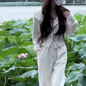 休闲风运动套装女春秋新款时尚连帽卫衣外套高腰抽绳阔腿裤两件套