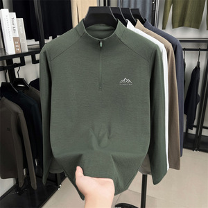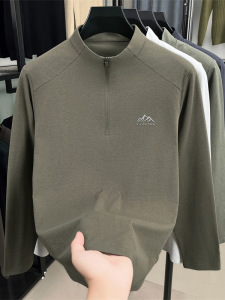 跨境男士立领卫衣长袖T恤秋季宽松休闲高级感纯色半拉链上衣外贸