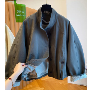 感韩系立领撞色工装外套女秋季新款风衣港风休闲流行