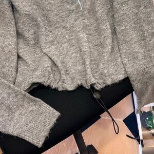 设计感假两件V领灰色毛衣女2024网红爆款上衣ins纯欲风针织打底衫