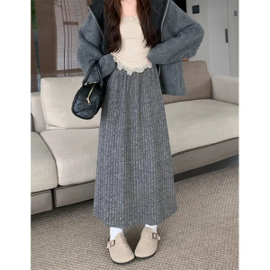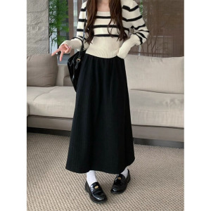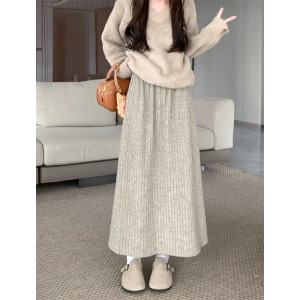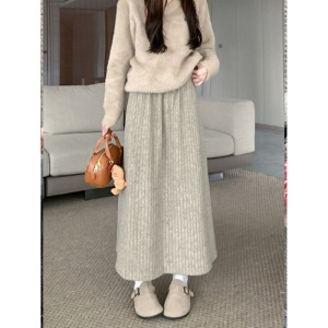 加绒加厚羊绒半身裙女秋冬2025新款高腰显示a字裙中长款大摆裙子