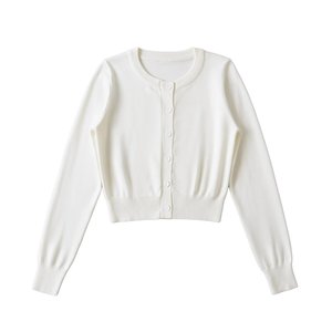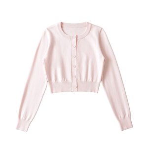 圆领长袖针织开衫女春秋设计感毛织外套气质收腰短款上衣2025新款
