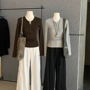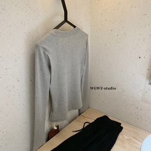 WGWE7132柔软好穿单排扣设计圆领显瘦长袖T恤