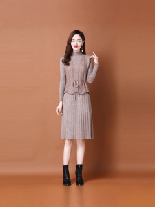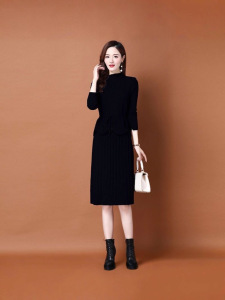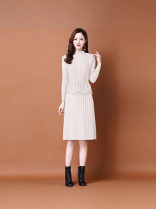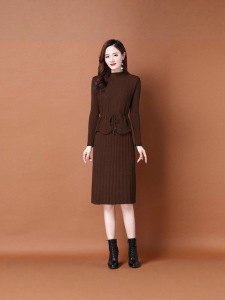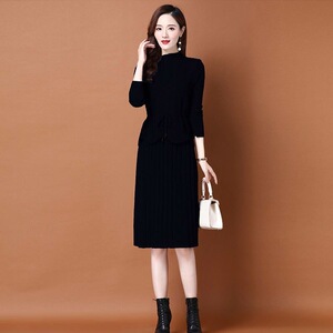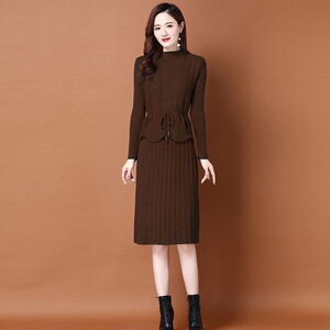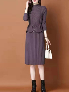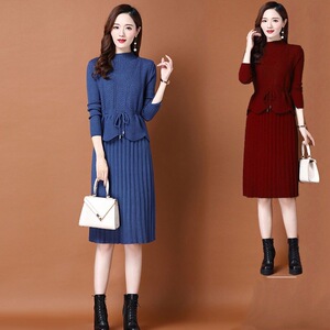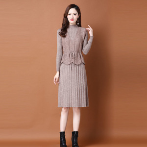 春秋针织连衣裙两件套女2025新款韩版收腰系带毛衣马甲裙子套装裙