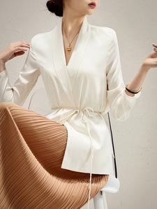 2025法式夏老钱风重磅桑蚕丝收腰显瘦设计感西装女真丝三醋酸衬衫
