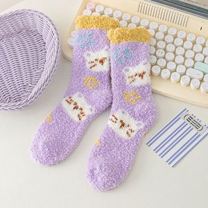 2025年秋冬新品卡通动植物珊瑚绒中筒袜批发加厚保暖可爱地板袜女